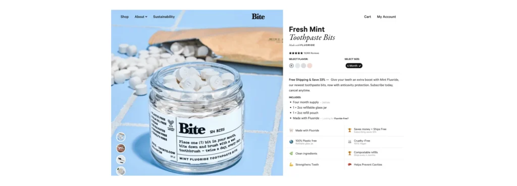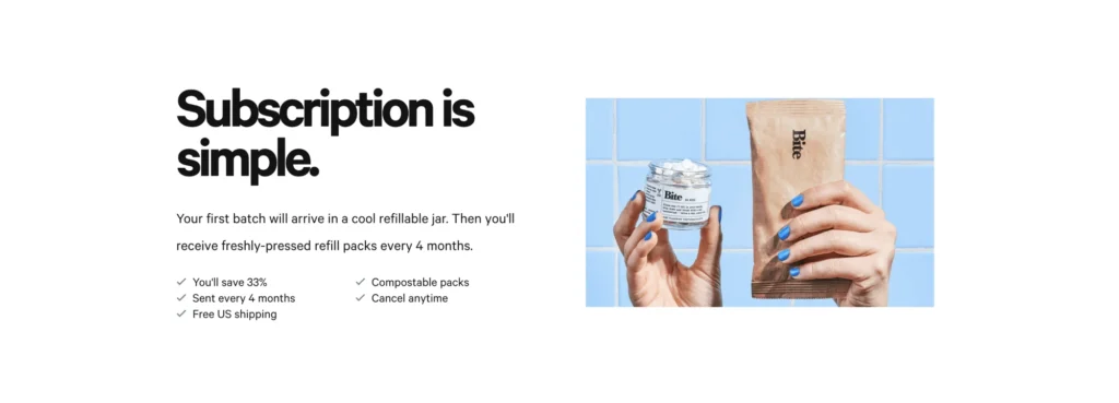 Bite offers their customers straightforward subscription options, with savings and free shipping.