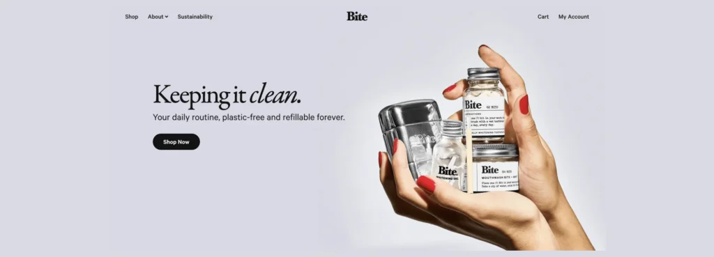 Artistic and clear images make Bite’s website and product pages helpful and interesting.