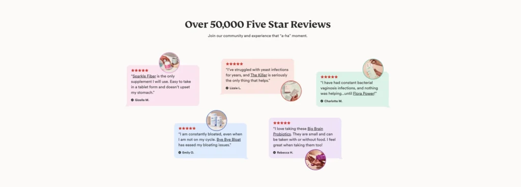 Customer reviews can help you build confidence in your brand—display them creatively like Love Wellness did so that customers can see how great your products are.