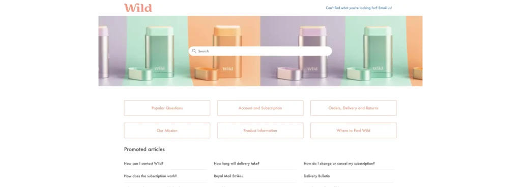 Wild has a thorough Help Center that gives shoppers access to self-serve support.