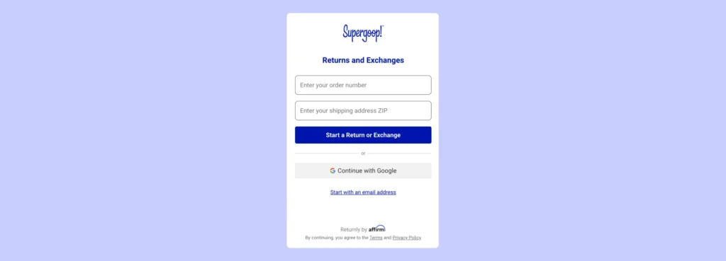Supergoop keeps it easy for customers to find their orders and start the return process on their site.