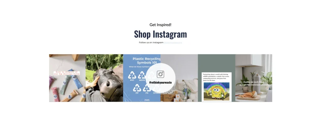 Zero Waste Store promotes their brand values and products through Instagram, which is integrated on their website.