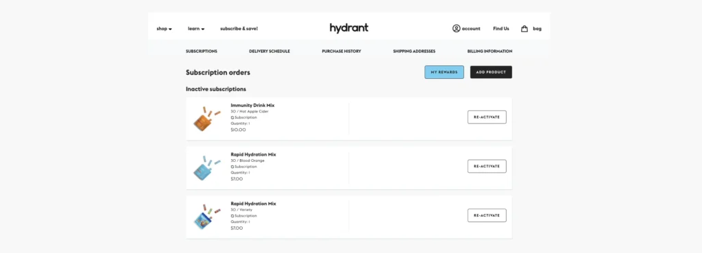 The Hydrant customer portal makes it easy for customers to manage their orders on their own, without contacting Customer Support.