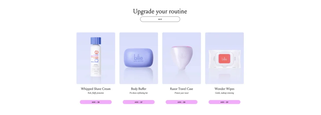 Billie ensures it’s easy for customers to see products that would complement their purchase, with a simple add-to-cart option.