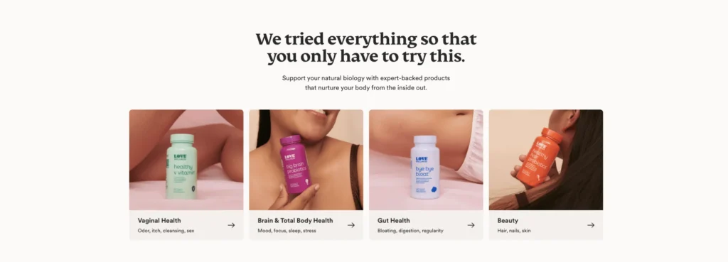 Love Wellness harnesses the power of collections by creating product categories related to different areas of the body and the specific wellness goals their customers are shopping for.