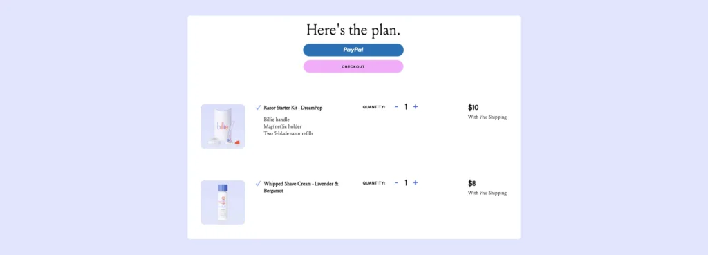 Billie’s checkout page is informative and gives their shoppers a sense of security.