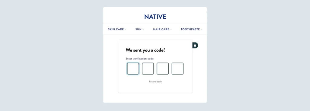 Native offers passwordless login, so customers can easily log in with a one-time code.