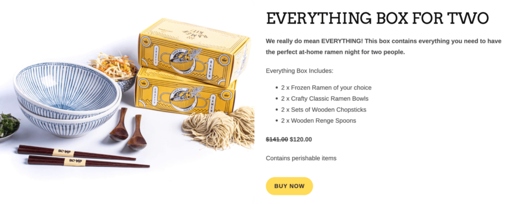 Instead of limiting customers to just pure bundling, Crafty Ramen offers both build-a-box bundles and curated bundles. We’ll dive into both models below.
