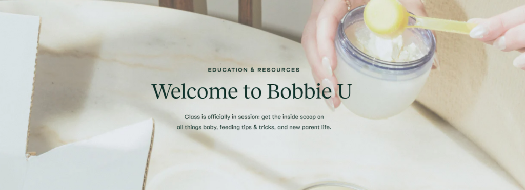 For instance, Bobbie has various resources to support their brand’s mission and vision like Bobbie U which hosts educational articles and tips. They take on an educational approach from a health and medical standpoint, which is well-tailored for mothers that are curious and invested in their children’s health and wellness.