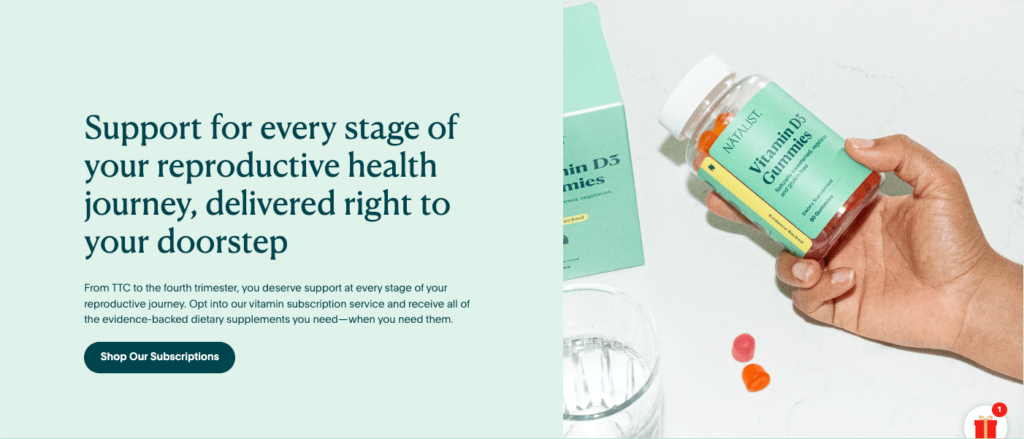 Natalist’s subscription landing page is tailored to their customers, centering their mission of “supporting your reproductive journey with evidence-backed fertility, pregnancy, and postpartum essentials.”
